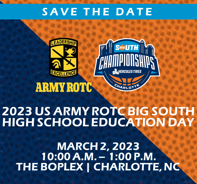 The 2023 US Army ROTC Big South High School Education Day is Thursday, March 2 at the BOplex in Charlotte, N.C., from 10:00am to 1:00pm. Students in attendance will include high school sophomores, juniors and seniors from Charlotte-Mecklenburg Schools and surrounding areas, and the day concludes with free admittance to the Hercules Tires Big South Women's Basketball Championship Quarterfinal game at 11:30am. In addition, all Education Day participants will be permitted to attend any game of the women’s quarterfinal session on March 2 with their ticket.